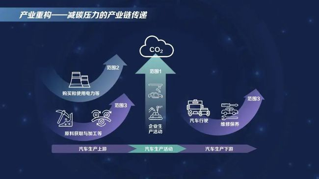 另外,產(chǎn)業(yè)重構(gòu)方面,減碳?jí)毫Φ漠a(chǎn)業(yè)鏈傳遞也很突出。現(xiàn)在越來(lái)越多的全球性大公司自主承諾減排,原來(lái)對(duì)一家企業(yè)到底排多少碳主要看它的生產(chǎn)過(guò)程,但現(xiàn)在已經(jīng)擴(kuò)大到產(chǎn)業(yè)鏈。一個(gè)產(chǎn)業(yè)鏈包括上游的原料和下游產(chǎn)品的應(yīng)用,把上下游綜合考慮起來(lái),就會(huì)形成減碳?jí)毫Φ漠a(chǎn)業(yè)鏈傳遞。比如,中國(guó)現(xiàn)在是世界上最大的小汽車生產(chǎn)和消費(fèi)市場(chǎng),每年產(chǎn)銷2500—3000萬(wàn)輛,這個(gè)量是美國(guó)和日本加起來(lái)的總和,這么大的量,對(duì)鋼材會(huì)有比較大的需求。一家承諾了整個(gè)產(chǎn)業(yè)鏈上要減碳的跨國(guó)公司在生產(chǎn)小汽車時(shí),就會(huì)要求上游生產(chǎn)鋼材的廠家也要跟著它減碳,這樣會(huì)形成倒逼,煉鋼廠如果達(dá)不到它的要求,它就會(huì)去找其他能達(dá)到要求的供應(yīng)商,所以在自主減排的目標(biāo)實(shí)現(xiàn)里會(huì)形成新的壓力傳遞,這是未來(lái)產(chǎn)業(yè)重構(gòu)里非常重要的驅(qū)動(dòng)因素。