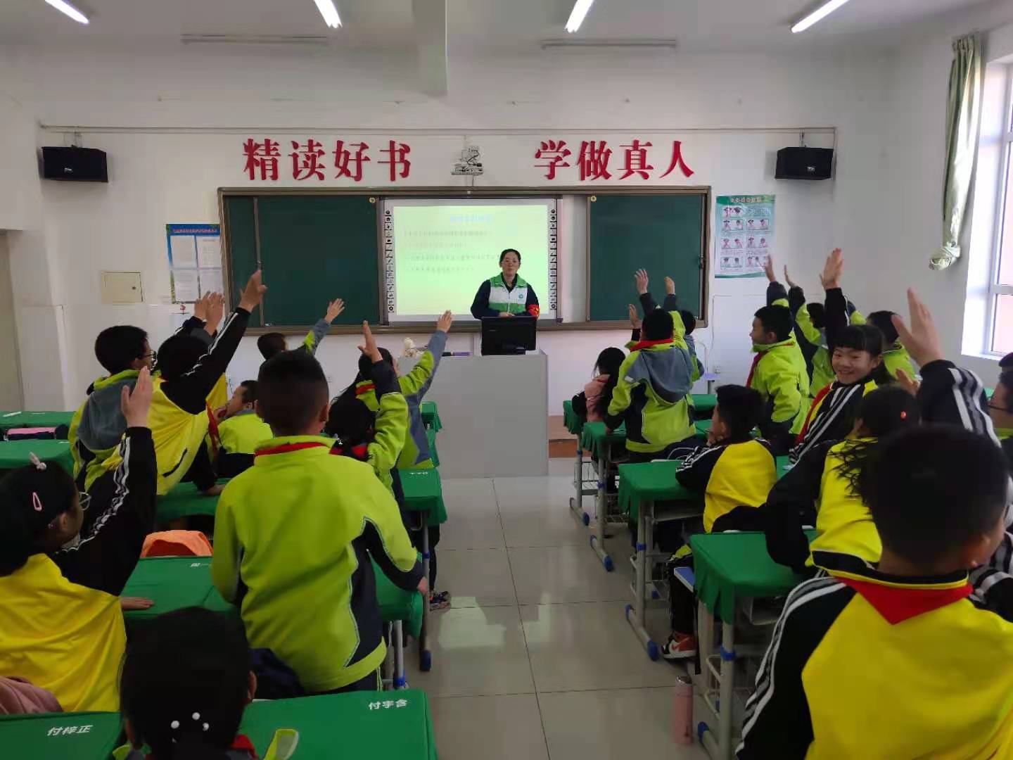 “濕手能不能觸摸家用電?”你們?cè)谏钪杏羞^(guò)觸電的經(jīng)歷嗎?”為普及小學(xué)生安全用電知識(shí)和觸電急救技能,課堂上,志愿者們結(jié)合設(shè)計(jì)精美的PPT,帶領(lǐng)小學(xué)生們同看視頻,同唱歌謠,通過(guò)現(xiàn)場(chǎng)問(wèn)答與同學(xué)們互動(dòng),活躍了課堂氣氛,提升了小學(xué)生對(duì)安全用電意識(shí)。
