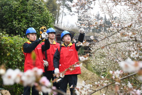 踏上蜿蜒的小路,穿過層層梅花林,國網(wǎng)福州供電公司共產(chǎn)黨員服務(wù)隊(duì)隊(duì)員們正輕車熟路地沿著高空銀線查看線路走廊,并對線路進(jìn)行日常的巡視測溫,以確保村落的供電可靠性,保障村民的生活用電需求。“我們在巡視過程中會重點(diǎn)防范鳥害和樹線矛盾帶來的季節(jié)性安全隱患。”隊(duì)員王蘇宇介紹道。