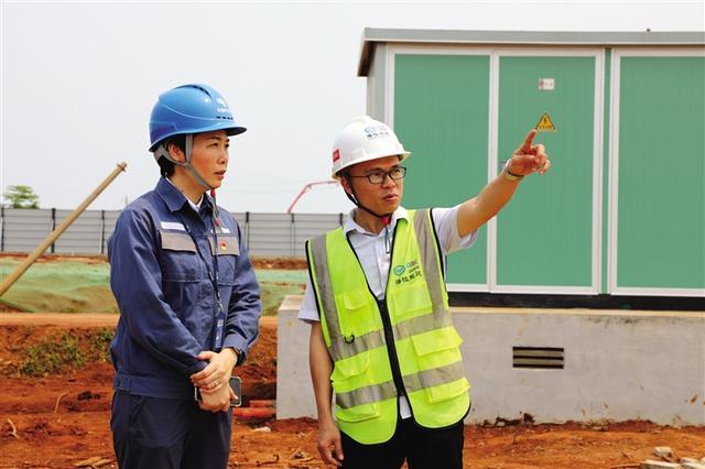 南方電網(wǎng)海南電網(wǎng)公司客戶經(jīng)理到海南醫(yī)學(xué)院桂林洋校區(qū)一期項目施工現(xiàn)場走訪。楊永光 攝
