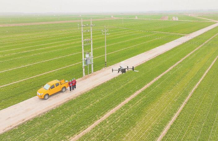 “紅馬甲”網(wǎng)格員操作無人機(jī)巡檢農(nóng)業(yè)排灌重點(diǎn)線路。