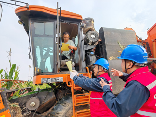 國網(wǎng)元氏縣供電公司員工在鐵屯村向收割機駕駛員宣傳安全用電常識。劉美君攝走進晉州市周家莊鄉(xiāng)的田間地頭,一輛輛玉米收割機正在緊張工作中。國網(wǎng)晉州市供電公司員工提醒收割機手操作中注意機器與電線桿、拉線的安全距離。秋收期間,國網(wǎng)石家莊供電公司組織共產(chǎn)黨員服務(wù)隊深入田間地頭,開展電力設(shè)施保護宣傳,防止外力破壞影響。