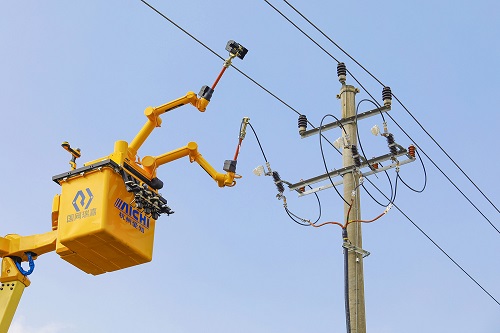 中國(guó)電力網(wǎng)訊 “哇,機(jī)器人也能在高壓線上帶電作業(yè)了,這設(shè)備真是太先進(jìn)了!”11月3日,在寧波市鄞州區(qū)大嵩區(qū)濱海工業(yè)區(qū)合港路上,一輛黃色的帶電作業(yè)車??吭诼愤叀kS著絕緣斗臂的緩緩上升,一個(gè)黃色的機(jī)器人與10千伏高壓線越靠越近。當(dāng)接近高壓線時(shí),機(jī)器人伸出一只“手臂”捏起一根電纜,另一個(gè)“手臂”舉起剝線器,開(kāi)始了為導(dǎo)線搭接。大約四十多分鐘,“機(jī)器人”順利完成了帶電搭接熔斷器上引線作業(yè)。