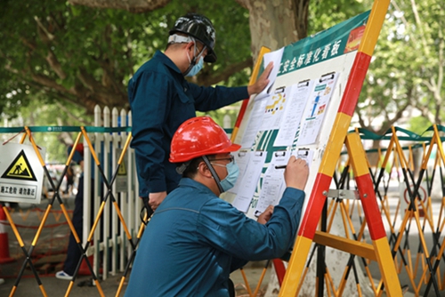 中國電力網(wǎng)訊 5月8日,國網(wǎng)壽光市供電公司工作人員對10千伏城南線13臺區(qū)高壓進(jìn)線柜與10千伏城南線工商銀行家屬院95臺區(qū)進(jìn)行T接電纜,同時更換10千伏城南線004號分接箱,進(jìn)一步提升迎峰度夏期間電力設(shè)備的高負(fù)荷用電質(zhì)量,保障城區(qū)居民安全可靠用電。