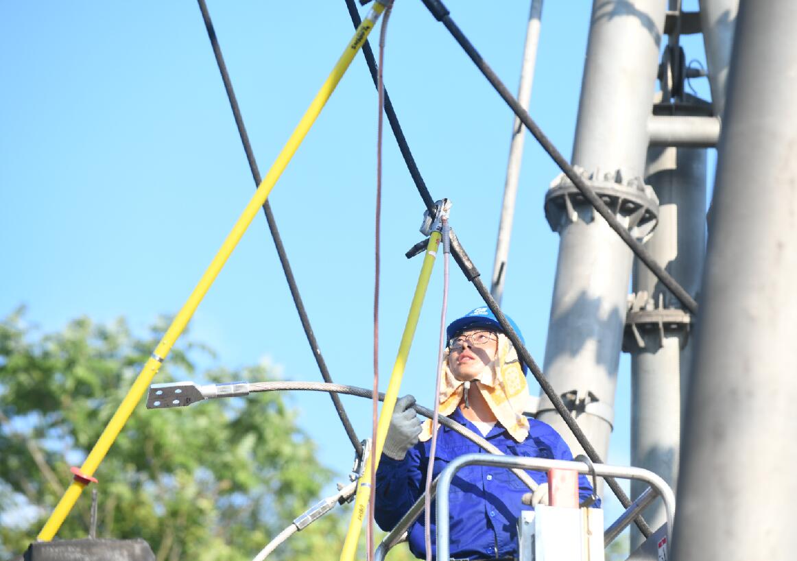 檢修現(xiàn)場,作業(yè)人員頂著烈日展開作業(yè),豆大的汗珠不斷從他們的臉上滾落下來,汗水馬上就濕透了衣衫,他們就脫下來放在車上曬干了繼續(xù)穿。為了防止作業(yè)人員中暑,程勇將現(xiàn)場作業(yè)人員分為兩組,不斷輪替作業(yè),進(jìn)一步保證檢修任務(wù)順利推進(jìn)。