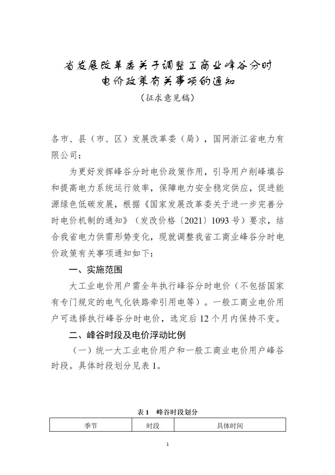 1.關于調(diào)整工商業(yè)峰谷分時電價政策有關事項的通知(征求意見稿)