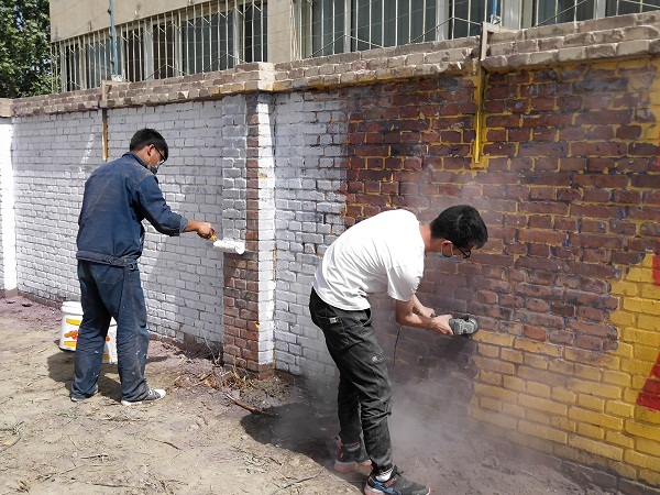 烈日當(dāng)頭,33℃的高溫絲毫沒有影響到大家干活的熱情。修繕路基的男生們和著水泥、手拿磚塊堆砌出一條筆直的長線;清理墻面的男生也不甘示弱拿著鋼絲刷,拎著裝滿油漆的白桶、滾筒刷來到圍墻外清理墻面;打掃庭院的女孩們拿著手中的勞動工具攀高爬下、忙忙碌碌。到了午休時分,為保質(zhì)保量完成任務(wù),張志龍,作為墻面清理負責(zé)人的他,選擇獨自留下,汗水一遍又一遍打濕他身穿的工作服,各色的粉塵混合著白色的油漆落在他的身上。他說:“今天雖然很累很辛苦,但看到俺們自己的勞動成果,能給大家創(chuàng)造好的環(huán)境,我覺得很有意義”。言辭之間,他充滿著自豪和快樂。直到晚上快十點,完成門口的墻面粉刷任務(wù),幾個人才帶著一身的泥土回家吃飯。