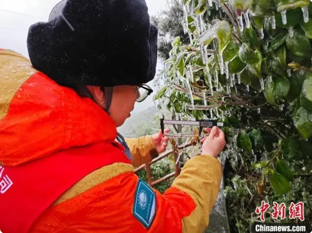 晉電援湘抗冰突擊隊(duì)隊(duì)員觀察冰情。國網(wǎng)山西省電力公司供圖