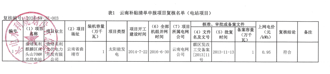 根據(jù)《財政部辦公廳關(guān)于開展可再生能源發(fā)電補貼項目清單審核有關(guān)工作的通知》(財辦建〔2020〕6號)和《國家可再生能源信息管理中心關(guān)于可再生能源發(fā)電補貼項目清單申報與審核工作有關(guān)要求的公告》等文件要求,相關(guān)可再生能源發(fā)電企業(yè)對滿足條件的可再生能源發(fā)電項目進行補貼清單申報,經(jīng)云南電網(wǎng)初審、云南省能源局審核確認、國家可再生能源信息管理中心復核?,F(xiàn)將國家可再生能源信息管理中心復核通過的云南補貼清單申報項目復核名單(電站項目)予以公示。