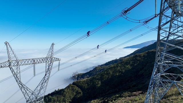 ▲2023年11月15日,國(guó)網(wǎng)四川電力員工在涼山州美姑縣500千伏寧沐一二線開展綜合檢修工作