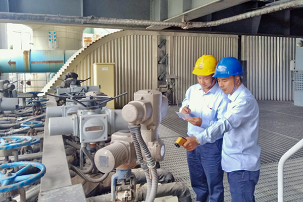 圖為該公司點(diǎn)檢人員正在進(jìn)行6號鍋爐閥門內(nèi)漏情況排查