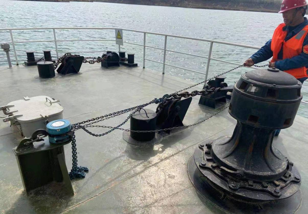 中國電力網(wǎng)訊 為保障廠區(qū)生產(chǎn)供水安全平穩(wěn),迎接即將來臨的汛期。4月8日,陜投集團(tuán)趙石畔煤電組織人員對廠外取水系統(tǒng)取水泵船錨鏈進(jìn)行調(diào)整。
