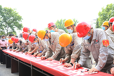 啟動(dòng)儀式上,職工代表向大家發(fā)出安全倡儀,全員在印有“落實(shí)安全責(zé)任 推動(dòng)安全發(fā)展”為主題的安全月活動(dòng)條幅上,鄭重簽下對(duì)安全生產(chǎn)的莊嚴(yán)承諾。
