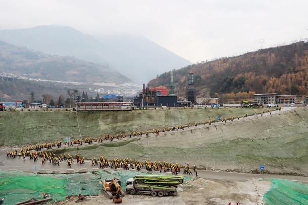 圖為大渡河地震災(zāi)害演練現(xiàn)場人員撤離