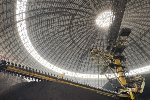圖為國能(泉州)熱電有限公司無人值守圓形堆取料機(jī)正在卸煤