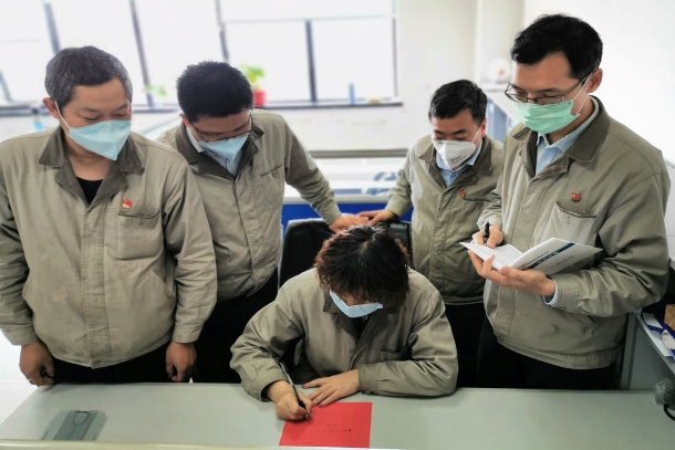 圖為該公司員工正在廉潔過節(jié)倡議書上簽字承諾