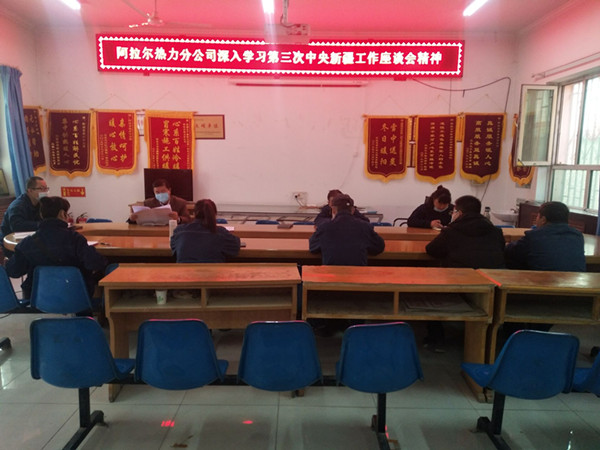 中國電力網訊 11月24日,新疆兵團一師電力阿拉熱力分公司黨員干部學習宣傳貫徹第三次中央新疆工作座談會精神,用全會精神武裝頭腦、指導實踐、推動工作,不斷提升職工群眾的獲得感、幸福感和安全感。