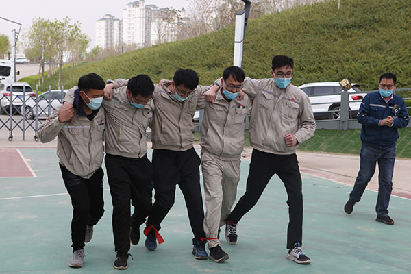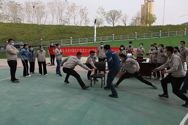 活動由《五人六足跑》《合作共贏》《黨史知識我知道》《紅歌接力》《拔河大賽》等5個項目組成。在《五人六足跑》《合作共贏》項目中,將各參賽隊員的默契表現(xiàn)展現(xiàn)的淋漓盡致,他們齊心協(xié)力、團結(jié)一致,充分展示了廣大職工充滿活力、拼搏向上的精神面貌。《黨史知識我知道》《紅歌接力》項目將整場活動推向高潮,尤為突出的是廣大職工掌握黨史知識的扎實度,每遇一題,各參賽隊反應迅速,競相展開黨史知識作答,正確率高、回答速度快,比賽中難分伯仲。在《拔河大賽》項目中,各隊都顯示出最強的比賽陣容,只見隊員們緊握長繩,卯足了勁拼命往后拉,哨子聲、吶喊聲此起彼伏,現(xiàn)場氣氛異常激烈。