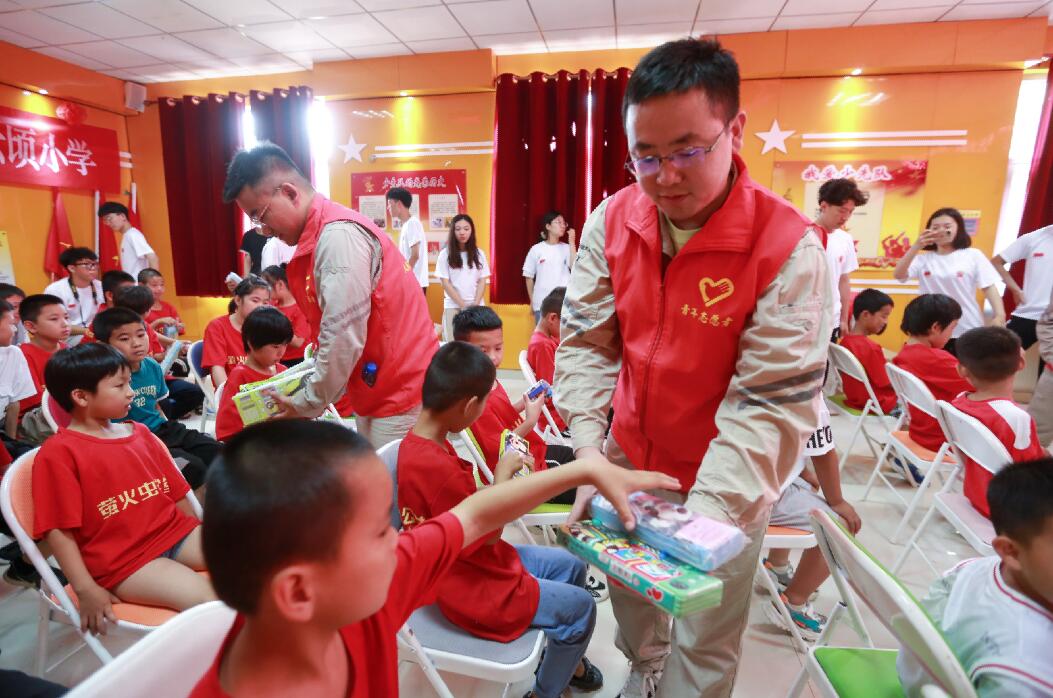 活動中,志愿者向小朋友們播放了百集微紀(jì)錄片《信物百年》第43集《渡江戰(zhàn)役第一船“京電輪”》,一起了解在大唐集團(tuán)澎湃發(fā)展歷程背后有著“渡江第一船”之稱的英雄船——“京電輪”的故事,引導(dǎo)他們傳承紅色信仰,堅定理想信念。在電力安全課上,為讓深奧難懂的火電廠生產(chǎn)流程及環(huán)保工藝變得更易于理解,志愿者們通過精美PPT和現(xiàn)場設(shè)備實體畫面相結(jié)合的形式將火電廠生產(chǎn)流程及環(huán)保工藝進(jìn)行呈現(xiàn),用實驗與講課相結(jié)合的方式讓電路變得具象而生動。答題環(huán)節(jié)中,小朋友們踴躍舉手,將自己剛學(xué)習(xí)理解的電路知識說出來,加強(qiáng)了學(xué)生們對于電力生產(chǎn)知識及安全用電知識的了解。此外,志愿者們還精心準(zhǔn)備學(xué)習(xí)用品,鼓勵同學(xué)們努力學(xué)習(xí),天天向上。
