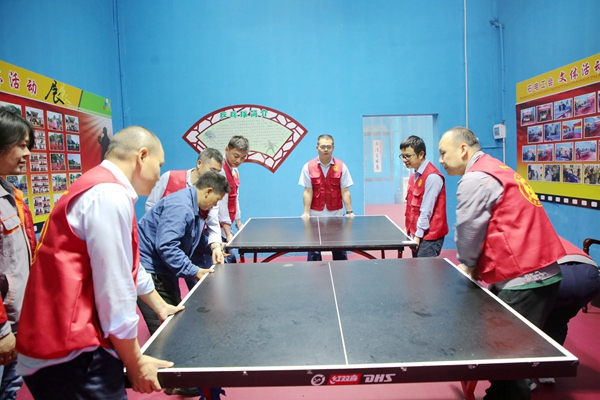 當(dāng)天上午9時(shí),該公司招募了來自三期項(xiàng)目黨支部的10余名黨員志愿者,開展了第一次“陜電之光”志愿服務(wù)活動(dòng),為當(dāng)晚即將進(jìn)行的湖南石門五洲乒乓球俱樂部“五周年慶典暨健平源杯”乒乓球團(tuán)體賽布置場(chǎng)地?;顒?dòng)中,志愿者們齊心協(xié)力將乒乓球臺(tái)、比賽圍欄以及其他比賽用具等抬至規(guī)定的位置,精心布置乒乓球團(tuán)體賽活動(dòng)場(chǎng)地,展現(xiàn)了無私奉獻(xiàn)、團(tuán)結(jié)友愛、助人為樂、積極向上的志愿風(fēng)采。