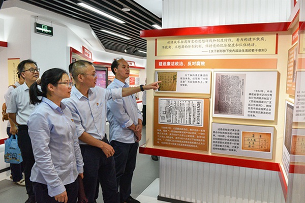 在龍巖市黨員政治生活館內(nèi),黨員干部、入黨積極分子們在機器人“講解員”的帶領下,依次參觀了“黨內(nèi)政治生活的百年歷程”、“黨內(nèi)政治生活的閩西蘇區(qū)探索”展區(qū),通過觀看文獻資料、歷史圖片、實物展覽、宣教視頻等了解了不同時期黨內(nèi)政治生活的探索和發(fā)展歷程,真切感受到老一輩無產(chǎn)階級革命家在艱苦的斗爭環(huán)境中不搞特權(quán)、帶頭講政治講黨性、發(fā)揚黨內(nèi)民主、接受黨和群眾監(jiān)督、持續(xù)保持清正廉潔的優(yōu)良品質(zhì)。