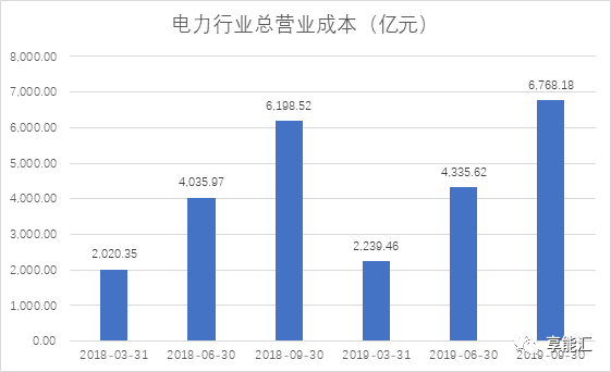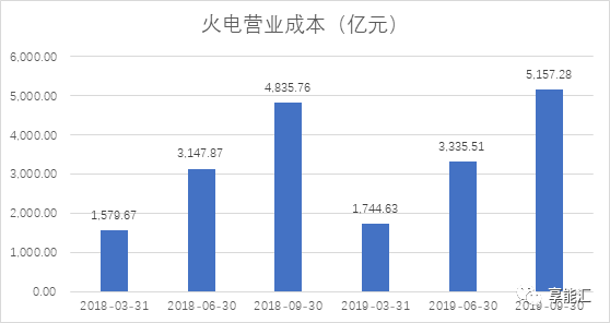 圖8:2018-2019年火電行業(yè)三季度營業(yè)成本