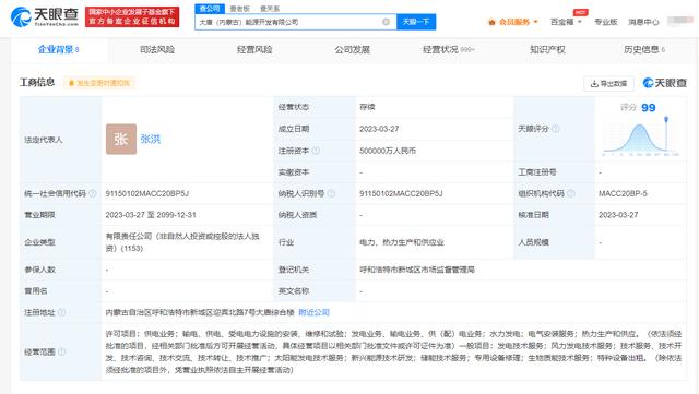 股東信息顯示,該公司由中國大唐集團有限公司全資持股。(DoNews)