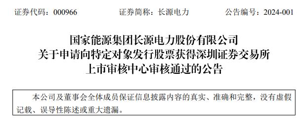 國家能源集團長源電力股份有限公司(簡稱“長源電力”)昨晚發(fā)布關于申請向特定對象發(fā)行股票獲得深圳證券交易所上市審核中心審核通過的公告。