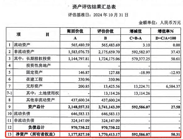 根據(jù)評估報(bào)告披露,陜煤電力集團(tuán)凈資產(chǎn)評估值177.04億元,評估增值59億元,增值率50.31%。