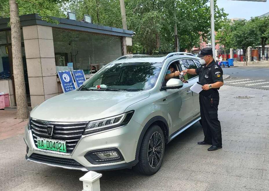 對(duì)進(jìn)入單位的人員及車輛進(jìn)行測(cè)溫及檢查健康二維碼 胡玉新攝