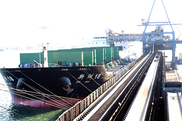國(guó)投京唐港碼頭裝船作業(yè)中
