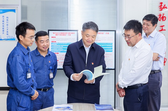 在江蘇公司,溫樞剛一行先后來(lái)到江蘇公司本部、清能分公司、綜合能源公司、南京燃機(jī)電廠、金陵電廠,親切慰問(wèn)一線員工,深入調(diào)研江蘇清能集控中心、新能源智慧能源平臺(tái)、綜合能源光伏監(jiān)管中心和應(yīng)急指揮中心,南京燃機(jī)電廠黃慶工匠工作室、燃機(jī)大數(shù)據(jù)中心、仿真機(jī)中心、燃機(jī)部件展示室,金陵電廠運(yùn)行集控室、職工創(chuàng)新工作室,詳細(xì)了解江蘇公司海上風(fēng)電生產(chǎn)運(yùn)營(yíng)、設(shè)備管理、科技創(chuàng)新、光伏建設(shè)與運(yùn)維、綜合能源服務(wù)以及精益化管理平臺(tái)、非補(bǔ)燃?jí)嚎s空氣儲(chǔ)能電站運(yùn)行等情況。