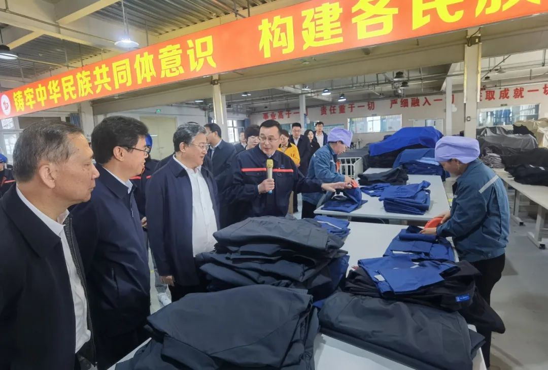 在寧夏同心(中核)清潔能源產(chǎn)業(yè)園,余劍鋒先后參觀了英利能源光伏組件全自動(dòng)智慧化生產(chǎn)線(xiàn)、同心防護(hù)科技公司服裝生產(chǎn)車(chē)間,詳細(xì)了解了工藝流程、設(shè)施設(shè)備、企業(yè)黨建和生產(chǎn)經(jīng)營(yíng)等情況,并聽(tīng)取了中核匯能引進(jìn)中核熱鹽、上能電氣等產(chǎn)業(yè)落地情況,充分肯定了中核集團(tuán)“六新一體”新能源產(chǎn)業(yè)幫扶格局對(duì)同心縣清潔能源產(chǎn)業(yè)鏈建設(shè)的引領(lǐng)作用。同時(shí),他還鼓勵(lì)當(dāng)?shù)芈毠ひ獔?jiān)定發(fā)展信心,“幸福是奮斗出來(lái)的!”