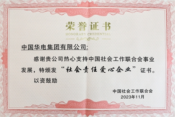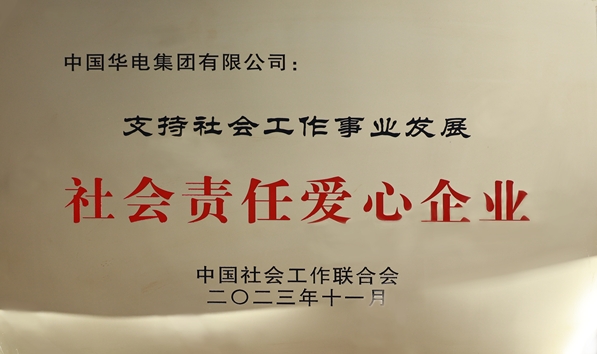中國(guó)華電獲“支持社會(huì)工作事業(yè)發(fā)展 社會(huì)責(zé)任愛(ài)心企業(yè)”稱號(hào)