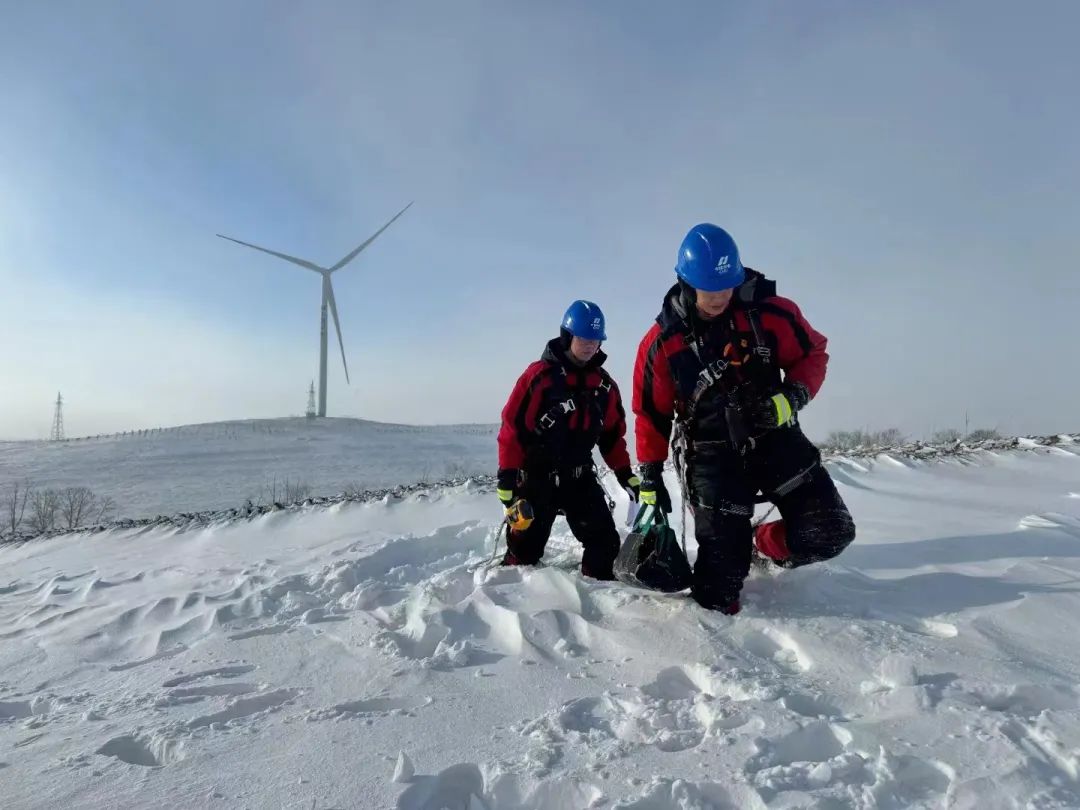 山西公司組織點(diǎn)檢員在雪后開(kāi)展風(fēng)機(jī)和集電線路巡檢工作,點(diǎn)檢員在零下十幾度的刺骨寒風(fēng)中踩著30厘米深的積雪,連續(xù)3天徒步行走50余公里,累計(jì)排查72基鐵塔,確保第一時(shí)間掌握設(shè)備情況,全力抗擊冰雪挑戰(zhàn)。