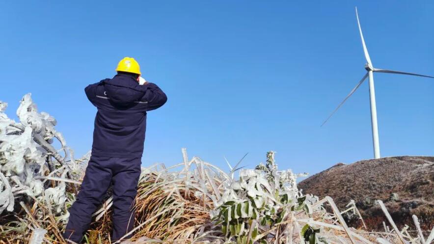 廣西柳州三江風電場積極應對寒潮,加強設備特巡工作。