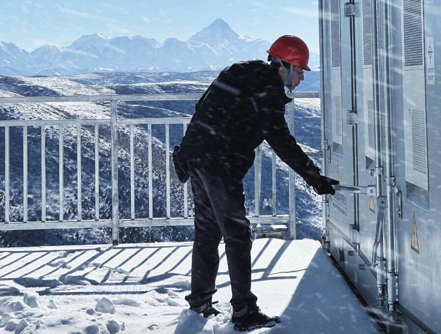 地處四川甘孜州海拔4500米高原上的雅江紅星光伏項目現(xiàn)場,運維人員正踩著厚厚的積雪,在對發(fā)電設備進行仔細檢查。