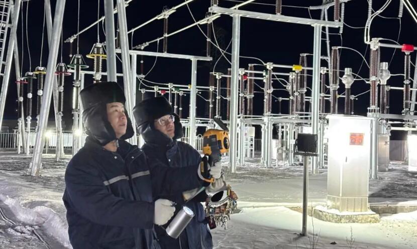 “注意檢查積雪、掛冰等情況,及時處理。”河北公司冀北新能源馳盛風電場運維人員對升壓站設備開展特巡,重點檢查絕緣子,避雷器及PT等設備的覆冰情況。受冷空氣影響,河北省張家口地區(qū)氣溫驟降,迎來降雪天氣。該公司立即啟動冬季氣象災害預警應急響應,加強設備積雪、掛冰等情況檢查,對易覆冰區(qū)段線路設備開展特巡,嚴格落實設備防寒保暖等措施,保障發(fā)電設備安全穩(wěn)定運行。