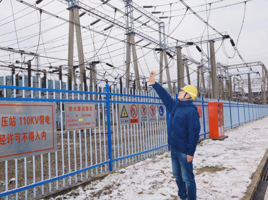 暴雪突至,浙江烏溪江公司運行人員在湖南鎮(zhèn)電站220KV開關站加強室外巡檢。