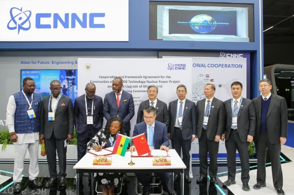 IAEA總干事拉斐爾·格羅西,世界能源理事會(huì)CEO安吉拉,WNA總干事薩瑪·萊昂,加納能源部長(zhǎng)馬修·普倫佩,馬拉維能源部長(zhǎng)易卜拉欣·馬托拉,法國(guó)原委會(huì)副主席皮凱蒂,加拿大核協(xié)會(huì)主席約翰·戈?duì)柭?,法?guó)電力公司董事長(zhǎng)呂克·雷蒙,國(guó)家能源局總經(jīng)濟(jì)師魯俊嶺、科技部中國(guó)國(guó)際核聚變能源計(jì)劃執(zhí)行中心副主任王敏、中國(guó)電力聯(lián)合會(huì)理事長(zhǎng)辛保安等中外領(lǐng)導(dǎo)嘉賓參觀了展臺(tái)。展會(huì)期間,中核集團(tuán)與加納能源部、法國(guó)電力集團(tuán)等重要合作伙伴進(jìn)行了雙邊會(huì)談。中國(guó)中原與加納核電公司簽署了核電項(xiàng)目合作框架協(xié)議。