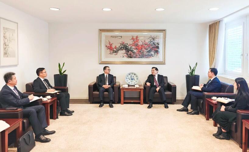 當(dāng)日下午,鄒磊拜訪了我國(guó)駐杜塞爾多夫總領(lǐng)館,與總領(lǐng)事杜春國(guó)就中國(guó)大唐對(duì)德開(kāi)展合作和商務(wù)往來(lái)進(jìn)行了友好交流。
