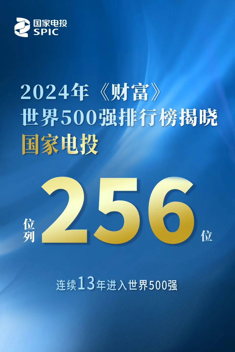 2024年《財富》世界500強排行榜揭曉,國家電投位列第256位,連續(xù)13年進入世界500強。