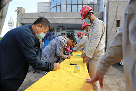 在宣誓活動前,為營造安全氛圍,我長山廠組織職工開展“安全生產(chǎn)月”簽名活動,職工在“落實安全責任,推動安全發(fā)展”條幅上莊嚴寫下了自己的承諾。