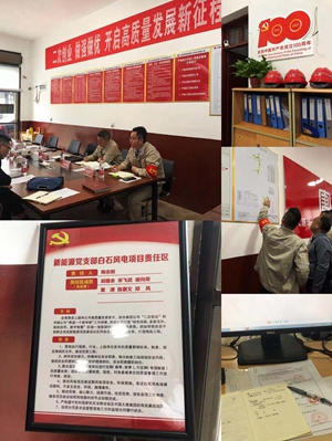 面對(duì)項(xiàng)目工期緊張、施工范圍廣、運(yùn)輸難度大等各種困難,風(fēng)電項(xiàng)目部團(tuán)隊(duì)始終堅(jiān)守在他們的“戰(zhàn)場上”,爭分奪秒向投產(chǎn)并網(wǎng)的目標(biāo)前進(jìn)。關(guān)鍵時(shí)刻,黨員干部沖鋒在前。風(fēng)電項(xiàng)目部有職工13人,黨員8人,黨員占比65.7%。按照公司黨委統(tǒng)一部署,積極開展黨建進(jìn)項(xiàng)目工作,成立了白石風(fēng)電責(zé)任區(qū),黨員干部亮身份、亮職責(zé)、亮承諾,積極投入到“黨員爭先樹標(biāo)桿、黨群協(xié)同創(chuàng)一流”項(xiàng)目攻關(guān)和“創(chuàng)崗建區(qū)”活動(dòng)中來,對(duì)工作中的重點(diǎn)、難點(diǎn)問題,黨員干部帶頭攻關(guān),形成月度成效表,取得了項(xiàng)目前期工作八大專題技術(shù)報(bào)告并批復(fù);定期組織安全學(xué)習(xí),安排專人負(fù)責(zé)巡視,及時(shí)發(fā)現(xiàn)項(xiàng)目工程安全隱患;解決了風(fēng)電項(xiàng)目使用林地批復(fù)獲取滯后及項(xiàng)目現(xiàn)場施工等系列問題。
