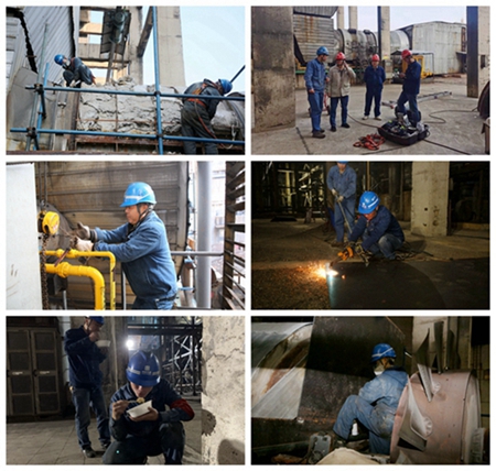 1月1日一上班沒(méi)多久,該公司熱機(jī)二班人員就接到了一個(gè)“大工程”——搶修1號(hào)爐B引風(fēng)機(jī)動(dòng)葉。引風(fēng)機(jī)作為風(fēng)煙系統(tǒng)的重要設(shè)備,其動(dòng)葉不能正常操作將直接影響到機(jī)組的高效穩(wěn)定運(yùn)行。盡管空氣中充斥著難聞的硫化物味道,但熱機(jī)二班搶修人員毫不畏懼,加班加點(diǎn),攻堅(jiān)克難,在起重人員、焊工人員等的協(xié)助下,通過(guò)齊心協(xié)力吊裝大鋼板阻斷返回的煙氣,保證人員安全作業(yè),于次日凌晨4時(shí)多完成B引風(fēng)機(jī)動(dòng)葉搶修。為了節(jié)省時(shí)間,搶修人員中飯和晚飯都是在現(xiàn)場(chǎng)或站著、或蹲著吃盒飯解決。期間,該公司黨委委員、副總經(jīng)理劉陸軍和生產(chǎn)各級(jí)管理人員多次到現(xiàn)場(chǎng)監(jiān)督指導(dǎo),確?,F(xiàn)場(chǎng)作業(yè)安全。
