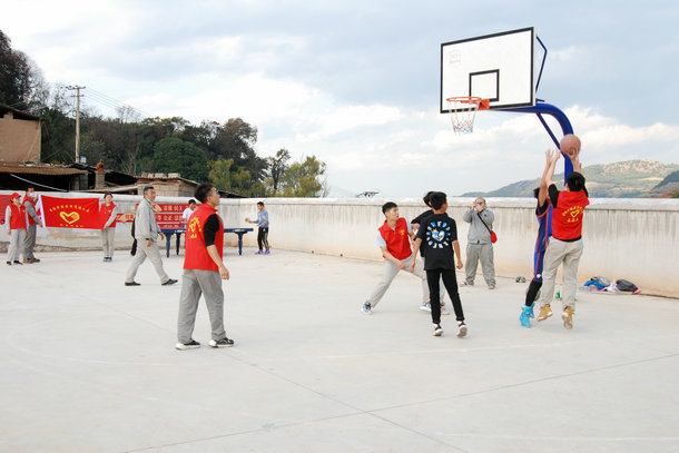 活動當天,村民活動室人頭攢動,身穿紅馬甲的志愿者向村民發(fā)放防范電信詐騙、疫情防控知識宣傳手冊;開展黨的十九屆六中全會精神宣講,創(chuàng)文、愛國衛(wèi)生知識問答;走訪慰問70歲以上的老人,并為村民送上了該公司書法協(xié)會會員書寫的新春祝“福”,以及一批文體用品?;@球場上、乒乓球桌前,吸引了眾多老勒村民前來觀看和吶喊助威,友誼賽豐富村民文化生活,增進民族團結(jié)情。