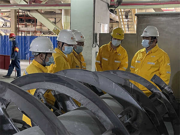 在鍋爐、汽輪機(jī)等檢修現(xiàn)場(chǎng),薛總與各項(xiàng)目負(fù)責(zé)人、檢修人員進(jìn)行深入交流,了解檢修項(xiàng)目的施工進(jìn)度、節(jié)點(diǎn)完成情況、現(xiàn)場(chǎng)安全措施執(zhí)行情況等,詳細(xì)了解現(xiàn)場(chǎng)施工重點(diǎn)、難點(diǎn)問題。他要求各項(xiàng)目負(fù)責(zé)人要充分發(fā)揮黨支部、黨員先鋒隊(duì)、黨員示范區(qū)的引領(lǐng)作用,在保證安全的前提下,克服疫情帶來的不利影響,嚴(yán)格按照公司的節(jié)點(diǎn)計(jì)劃,保質(zhì)保量完成本次檢修工作;要求做好設(shè)備解體發(fā)現(xiàn)問題的分析和研究,制定出有針對(duì)性的措施,保證設(shè)備長治久安;對(duì)設(shè)備管理專業(yè)人員發(fā)揮工匠精神和主人翁精神,自己制造專用工具、自己發(fā)揮技術(shù)經(jīng)驗(yàn)、減少外委修理、降低檢修費(fèi)用的做法給予肯定,要求做好這種精神的傳承和技術(shù)的傳幫帶。