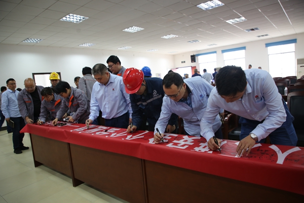 該公司各級(jí)管理人員、生產(chǎn)班組及外委單位代表70余人參加了啟動(dòng)會(huì)。會(huì)后舉行了安全生產(chǎn)月承諾簽名活動(dòng),全體參會(huì)人員在印有“人人講安全,個(gè)個(gè)會(huì)應(yīng)急——暢通生命通道”活動(dòng)主題的橫幅上鄭重簽名、堅(jiān)定承諾,全面拉開活動(dòng)序幕。