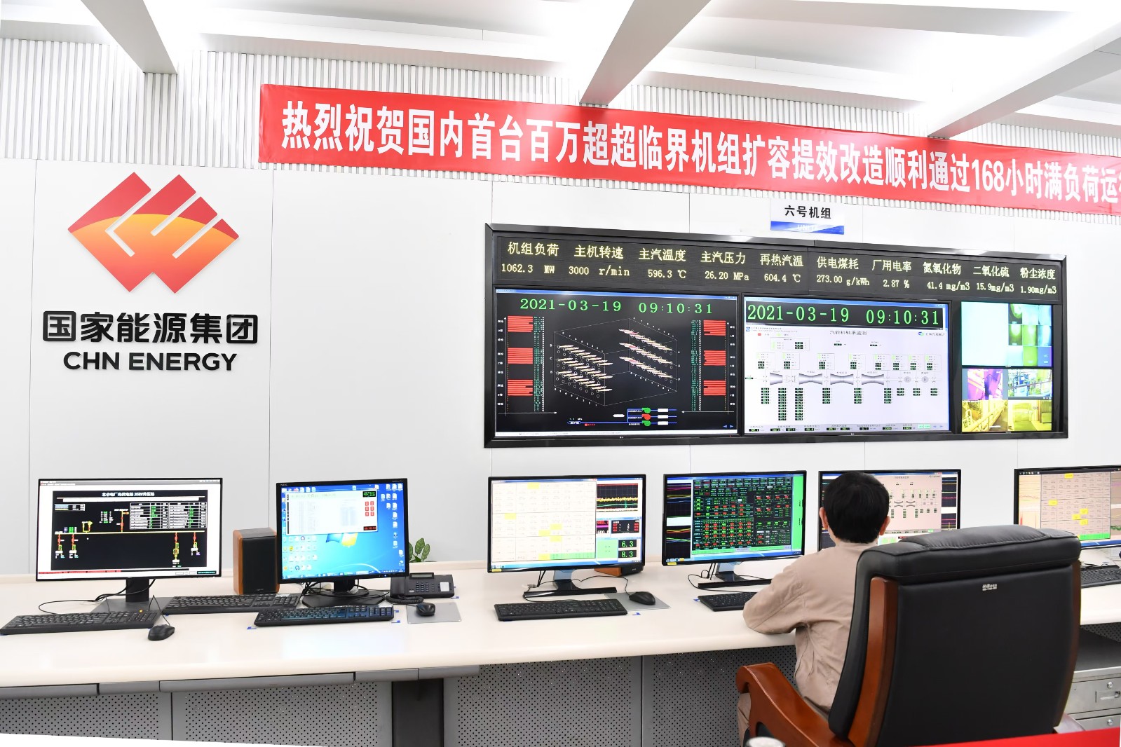 2020年9月,中國政府提出實現(xiàn)“雙碳”目標,小李的創(chuàng)新步伐更加堅定。2020年10月,首臺6號1000兆瓦機組實施改造,而更換汽輪機高壓缸是重頭戲。“高壓缸重達120噸,體積接近一個集裝箱。”小李如是說。要把一個龐然大物吊到17米高的汽機平臺,精準放置到軸承座上,各個環(huán)節(jié)必須準確無誤。整整7個日夜,小李蹲守現(xiàn)場,調(diào)整參數(shù)、處理缺陷。最終,機組順利并網(wǎng)。期間,該機組首次采用國能智深EDPF-NT+系統(tǒng),讓百萬級煤電機組DEH控制系統(tǒng)用上“中國腦”。改造后,兩臺1000兆瓦機組供電煤耗下降3.1克/千瓦時,增容100兆瓦,每年可增發(fā)電量5億千瓦時。