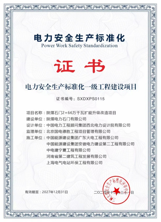 陜煤石電:電力安全生產(chǎn)標(biāo)準(zhǔn)化“一級(jí)達(dá)標(biāo)項(xiàng)目”+1